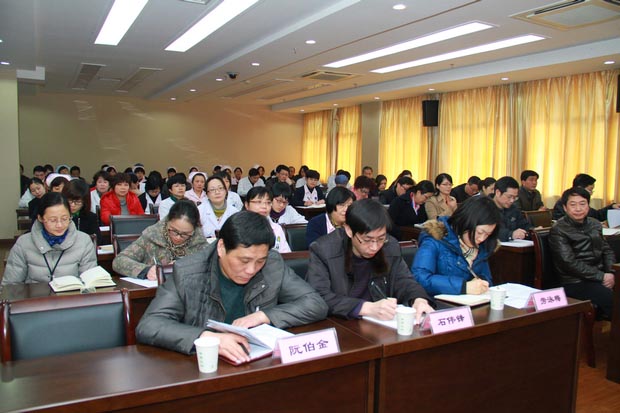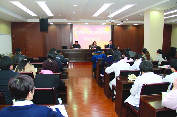 3月10日下午,我院召开党的群众路线教育实践活动动员会。动员大会由医院党委副书记、院长何炳福主持,党委书记张建荣作动员报告,市直卫生系统教育实践活动第三督导组组长、市卫生局党委委员、副局长郑杰出席动员会并讲话。督导组成员、市卫生局相关处室负责人阮伯金、石伟锋、劳泳梅3位同志到会指导,医院领导班子、中层干部、各党支部书记、工青妇、各民主党派负责人以及部分党员、职工代表80余人参加了会议。