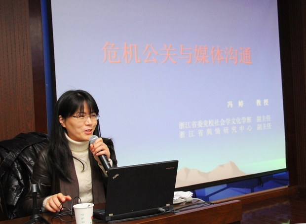 此次读书会邀请到浙江省委党校冯婷教授前来授课。冯教授以“危机公关与媒体沟通”为主题为管理者们上了一堂如何理性应对媒体的技巧与方法的讲座。在“全媒体”时代,互动性、快捷性、多元性和大众性成为了信息传播主要特征,任何微小的危机事件都可能经媒体的传播陷入舆论的漩涡,导致医院的美誉度及公众信任度受损。对此,冯教授以翔实的现实案例和多媒体视听互动的形式,向与会管理者就医院与新闻媒体间如何进行有效沟通、现代医院怎样借助媒体平台理性处理突发性事件等方面进行了细致的阐述和解析。