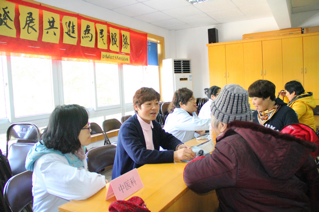 在社区一隅,来自我院妇科、中医科、儿科等科室的6名志愿医护人员开展送医进社区义诊活动,为社区居民送去健康服务。