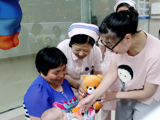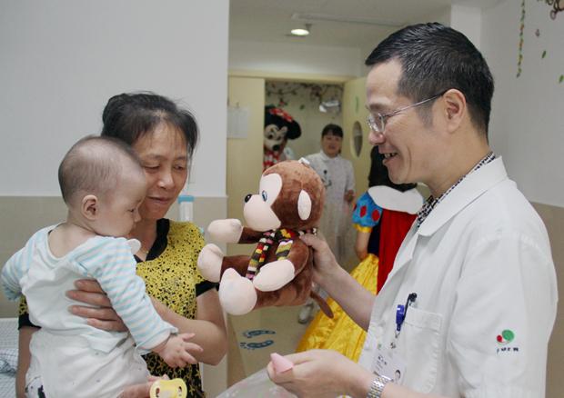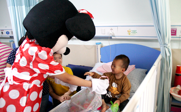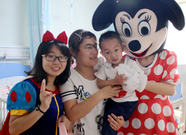 今天是六一国际儿童节,是小朋友们的节日。一大早,为让生病的宝宝们过上一个快乐而难忘的节日,在病痛中感受节日的喜悦,我院精心组织活动,为在院患儿送上礼物与祝福。 当天上午,院领导、护理部主任及儿内科病区的医护人员等一起走进病房、输液室、儿科诊疗区,为每位小朋友送上一件件做工精致的玩具并送上节日的祝福,祝愿他们早日康复。孩子们收到可心的礼物和温暖的问候后,一个个露出了甜美的笑脸。由天使们扮成的白雪公主和米老鼠,走向小朋友们,与他们一起玩乐与拍照,逗着孩子们快乐地笑,或许能短暂地忘记了病痛,记住这个温暖而有意义的节日,记住这群可爱的白衣天使。 六一节慰问在院患儿是医院每年都要开展的一项活动。旨在为孩子们营造起快乐的节日氛围,让在院治疗中的小患儿们感受到医院的关爱和祝福,让他们幼小的心灵感受到温暖与呵护!