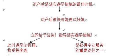 开展PAC具体目标:使接受人工流产的妇女在离开手术机构以前达到以下几点共识:1、具有预防非意愿妊娠的意识;2、知情选择一种适合于自己的避孕方法;3、获取所选用的或过渡时期适合于自己使用的避孕药具,以保证能够立即落实避孕措施;4、有理解并能坚持正确使用所选用的避孕方法的信心和决心。