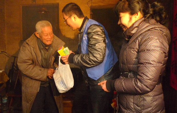 16762月7日上午,我院团委组织青年团员开展帮困送温暖活动。团委书记赵军、副书记尉鹏杰等一行4人在社区工作人员的陪同下,冒雨前往八字桥社区,向3户老弱病残的孤寡老人家庭送上大米、食用油等慰问品,祝福他们过一个祥和喜庆的春节。