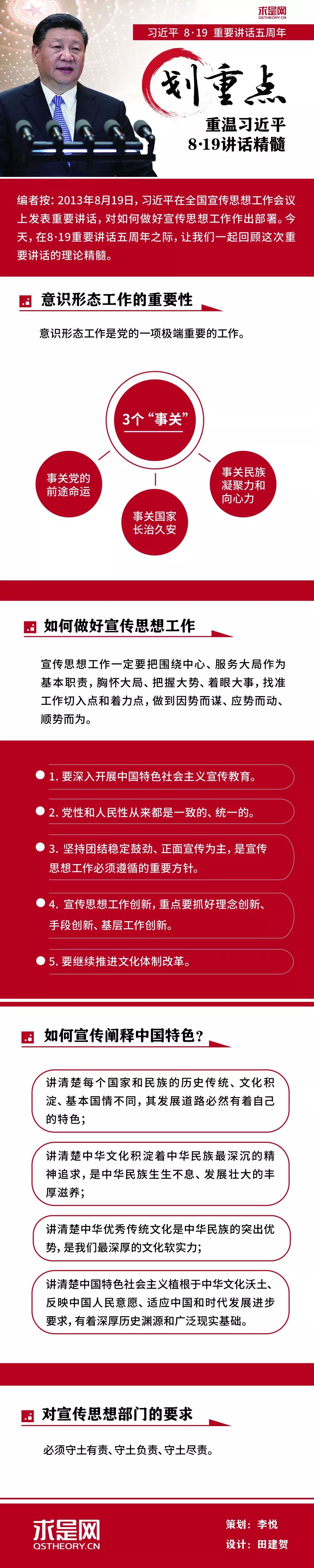 【“学习笔记”按】2013年8月19日,习近平在全国宣传思想工作会议上发表重要讲话,对如何做好宣传思想工作作出部署。今天,在8·19重要讲话五周年之际,让我们一起回顾这次重要讲话的理论精髓。