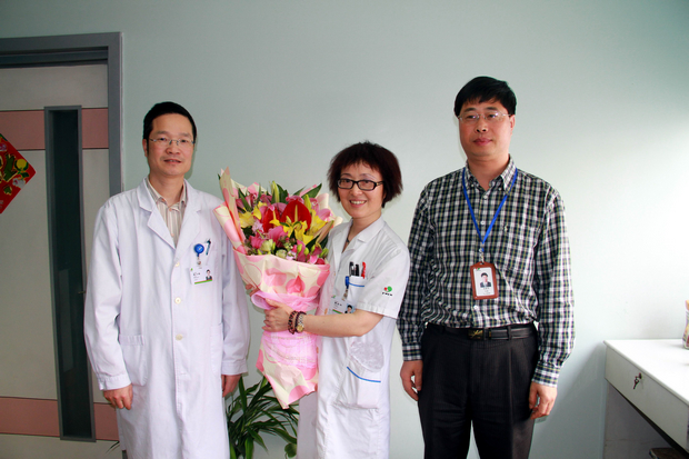 ,医院党委书记张建荣、副院长、工会主席陈小明等看望慰问全国五一劳动奖章获得者、浙江省劳动模范解左平同志。