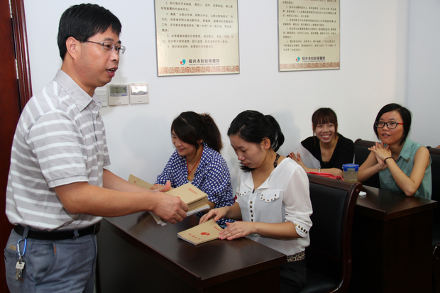 在合唱一曲《学习雷锋好榜样》后,我院道德宣讲员张建荣书记讲医德医风,他从职业道德、社会公德、医务人员医德规范等方面阐述了医德医风的内涵及重要性,并要求每位新职工自觉遵守医务人员的职业道德规范,成为爱岗敬业,忠于职守,诚实守信,乐于奉献的医务工作者。张书记的讲座博得了大家的热烈掌声。大家都感到受益匪浅,深受教育和启发。随后,张建荣书记向在座的学员送一份“吉祥”,送给每人一本精美的笔记本,希望大家在平时的生活工作中多思、多学、多记。