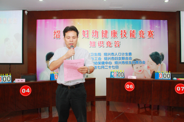 市卫生局袁立江局长致辞,他指出今年是《中华人民共和国母婴保健法》公布20周年,也是“妇幼健康服务年”,国家卫生计生委号召在全国范围内开展妇幼健康技能竞赛,以赛促学、以赛促练,内强素质、外树形象,激励广大妇幼健康服务战线工作人员钻研业务,切实提高理论水平和操作技能,展现妇幼健康服务系统勤于学习、业务精湛、爱岗敬业、积极向上的精神风貌和良好社会形象。市卫生局也非常重视,此次选拔赛由绍兴市卫生局基妇处牵头,绍兴市妇幼保健中心承办于7月中旬全面启动。经统一笔试选拔后,38名选手从全市470余名从事妇幼保健医疗卫生工作者中脱颖而出,入围市级选拔赛;希望大家能赛出风格、赛出水平,并预祝晋级选手能代表全市医疗卫生工作者在上级决赛中取得好成绩。