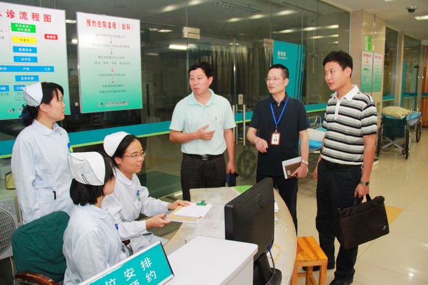 7月29日下午,市委政法委秘书长、市委维稳办主任王忠灵、维稳处处长戴大新、科员杨顺风等一行在市卫生局医政处副处长王健的陪同下来院调研反恐安保工作。我院陈小明副院长、保卫科王永康科长陪同调研。