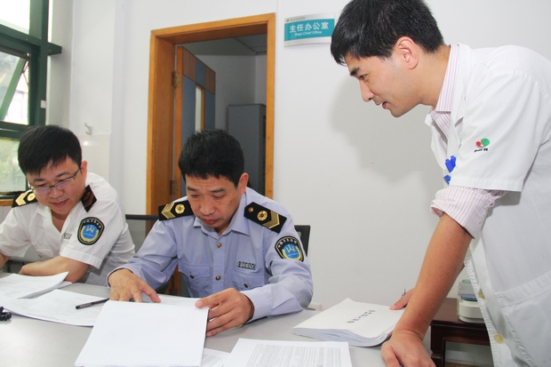 9月24日上午,由市卫生局政治处主任、市卫生监督所所长应鑫德带队、市卫生监督所以及各县市区卫生监督所有关科长等组成的10人检查组对我院依法执业情况进行专项督查。何炳福院长、徐关德副院长、方敏副院长及相关职能科室、业务科室负责人陪同检查。