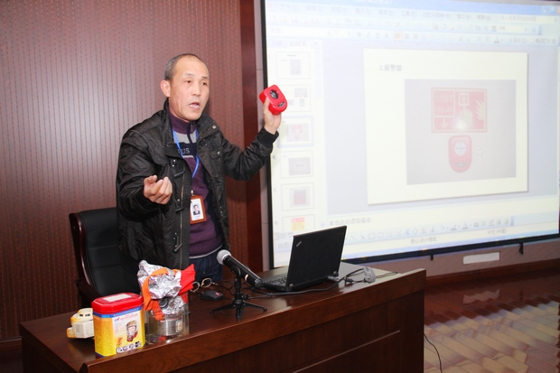 保卫科王永康科长为参加培训人员作消防安全知识培训,介绍院内常见的消防标识、消防设施、消防报警系统、应急出口标识等,同时演示正确使用灭火器与消防面罩的方法。同时通过典型火灾案例视频,教大家在面对火情时,应具备的报告火警、扑灭火灾、逃生自救和组织人员疏散等相关知识和技能。