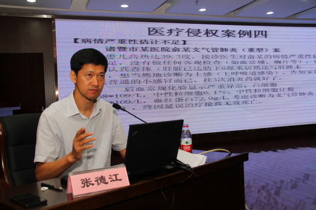 此次培训由兴市医疗纠纷调处委员会主任张清炎和浙江大公律师事务所张德江律师授课。张清炎主任和张德江律师结合医疗行业发生的一个个具体而生动的医疗纠纷案例,诠释了相关医事法律条文,剖析了纠纷产生的根源,提出了积极的防范对策。同时对医务人员在医疗活动中如何做到依法执业,保障患者权益,有效规避医疗风险,减少纠纷及事故的发生,提出了不多行之有效的措施。