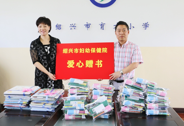 5月22日上午,我院党委书记徐文英等一行4人来到结对社区八字桥社区辖区内的绍兴市育才小学,开展捐赠图书文具活动。