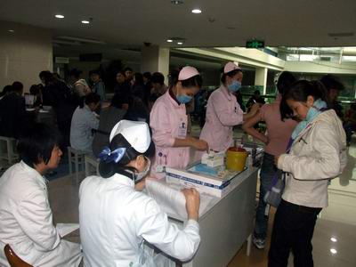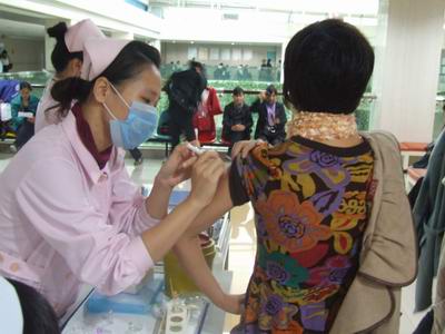 我院医务人员正在为服务行业一线工作人员接种甲流疫苗