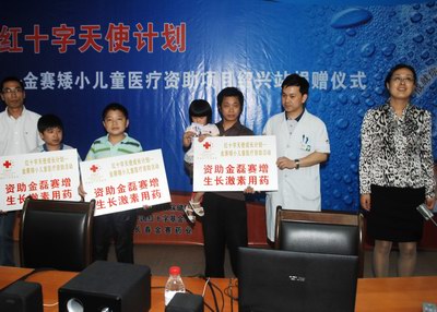 6月14日下午,我院携手中国红十字会开展矮小儿童治疗资助活动,身高只有0.88米的13岁江西小姑娘周艳和其他两位矮小症患者获得了免费治疗资助。我院副院长方敏(右一)出席捐赠仪式,并衷心祝福矮小症儿童们都能得到良好的康复。
