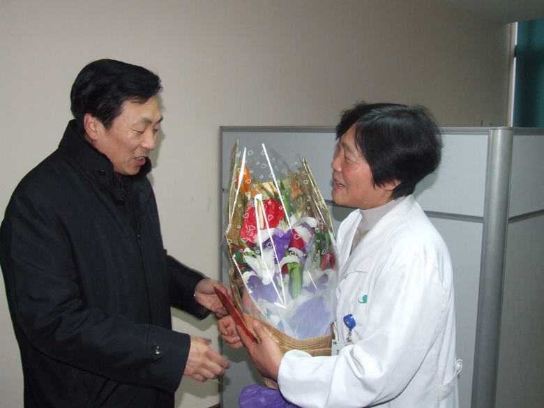 1月26日,绍兴市常务副市长陈长兴在市卫生局邵田田局长、马国灿副局长及医院领导的陪同下到产科门诊慰问我院的省人大代表、省医学扶持重点学科带头人、绍兴市第七批专业技术拔尖人才、带头人、产科大科主任张秀兰。