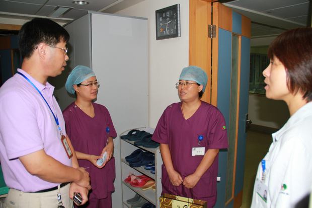 院领导及有关职能科室同志亲切询问新疆医生的生活、工作情况。