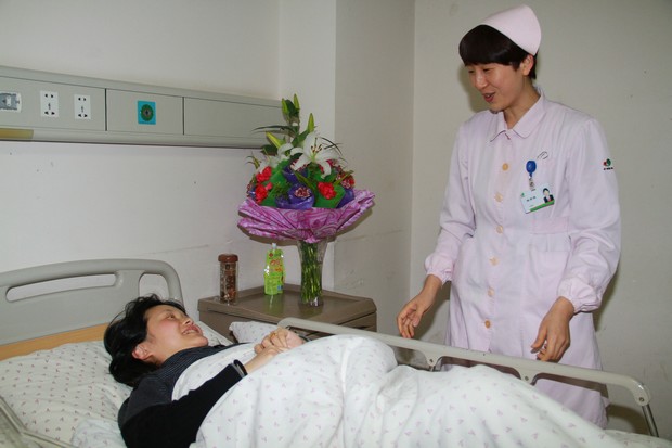 我院医务人员代表主管护师陈燕蓉向新年宝宝家庭献上鲜花,并致以节日的问候
