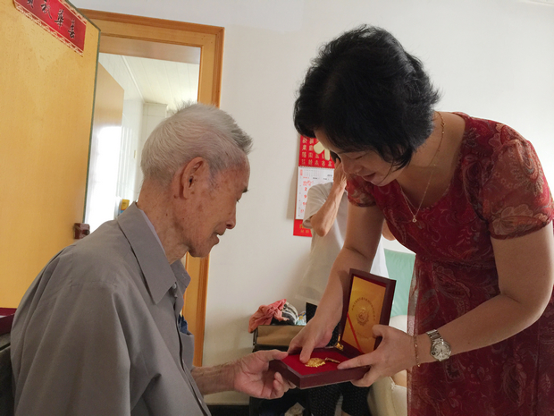16548月28日上午,我院党委书记徐文英、人事科科长王海洲等走访慰问了参加过抗日战争的新四军老兵、医院离休干部何秉华、朱同寿同志,为他们送上了由中共中央、国务院、中央军委颁发的中国人民抗日战争胜利70周年纪念章及慰问金等。慰问中,徐书记亲切询问了老干部们的身体状况和生活情况,并向抗战老兵致以崇高的敬意,感谢他们对国家、对医院的发展所作出的贡献。