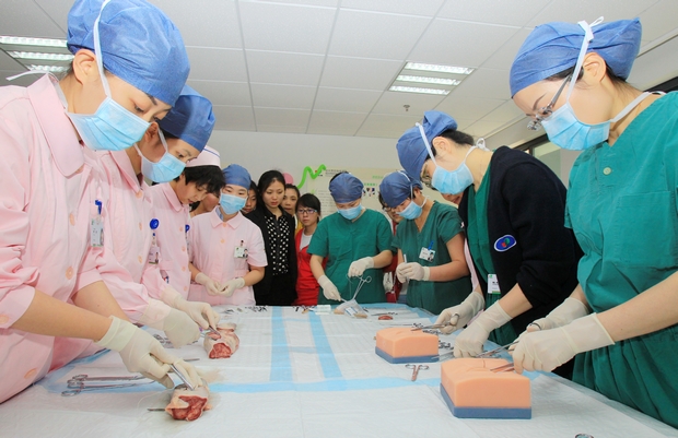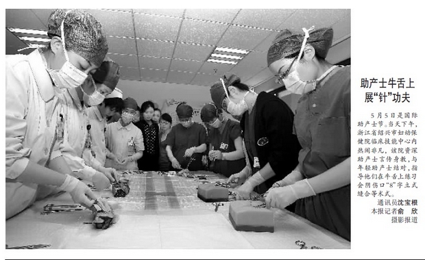 17955月5日是国际助产士节,当天下午,我院的临床技能中心内热闹非凡,济济一堂,资深助产士们理论结合实际,通过ppt讲解会阴侧切缝合相关知识,并动手展示了会阴伤口间断缝合、连续缝合、“8”字立式缝合等术式,与年轻助产士结对,并指导她们大胆地在牛舌上展示“绣花”功夫。大家热情高涨,相互讨论,不断进行技艺上的切磋和交流。据护理部主任孙秀娟介绍,医院2013年的...