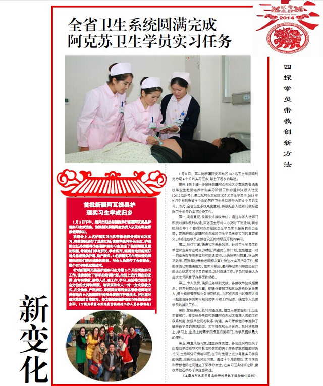 15752月12日下午,我院召开欢送第八批援疆医生座谈会。医院党、政领导班子,儿科系统代表为即将出发赴新疆开展援助工作的张霖医生送行,并深切希望张霖同志顺利突破“生活关”,以健康的体魄、良好的精神状态,尽快适应新疆的环境,将多年的工作经验和优良作风带到新的岗位中,为当地的发展做出自己的贡献,圆满援疆任务。祝愿他在疆期间身体健康、工作顺利!