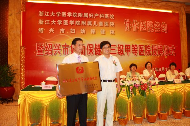 21269月16日下午,我院在国际大酒店隆重举行医院与浙江大学医学院附属妇产科医院、浙江大学医学院附属儿童医院协作医院签约暨三级甲等医院授牌仪式。绍兴市副市长丁晓燕、市政府副秘书长邵田田、省卫生厅妇社处处长胡崇高、浙大附属妇产科医院院长黄荷凤、浙大附属儿童医院副书记俞惠民、市卫生局局长马国灿等领导出席仪式。授牌仪式现场浙江省卫生厅妇社处胡崇高处长宣读《关于公布第三轮三级甲等妇幼保健院评审结果的通知》,并为...